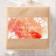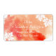 Modern abstract watercolor splash coral peach wedding label featuring a hand painted watercolor paint splash with texture in tones of coral orange and peach, maple leaves in white with coral veins and text in white. This elegant and stylish casual wedding design is a completely customisable template perfect for your spring, summer or fall/autumn wedding. Note that this is only an image of watercolor and not real texture.