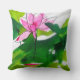 Modern floral, modern watercolour art from original painting by artist Sacha Grossel. This beautiful pink waterlily amongst dark green and lime green foliage shows an abstract depiction of the waterlily's reflection. This original art pillow would look great in any home or office.