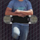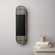 Modern Abstract Waves on Black skateboard. This skateboard comes with abstract digital waves on each side. The background is black.
