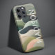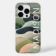 Modern Abstract Wavy Pattern Personalised Name iPhone 14 Pro Phone Cases features an abstract wavy pattern in grey, green and pink with your personalised name in white modern script typography. Perfect for personalised Christmas gifts and winter holidays. Designed by © Evco Studio www.zazzle.com/store/evcostudio