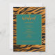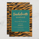 Animal print background with emerald green rectangle edged with old gold colour are embraced together in the Bachelorette weekend invitation design. This Bachelorette invitation template combines two size of font, different fonts and different colours of fonts for more attractive look.