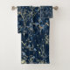Modern Abstract Wildflowers on Dark Navy Blue Bath Towel Set
