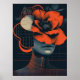 Modern abstract woman portrait with flowers poster
