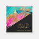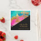 Chic sophisticated acrylic painting wedding paper napkins in vibrant hot pink, teal, yellow gold, and black colour palette with abstract brushstrokes and faux gold modern contemporary fully editable typography script. ++++++++++ Personalise it with bride and groom names and wedding date! +++++++++++++++++ It is suitable for all seasons trendy urban elegant style wedding receptions