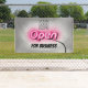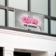 Open pink neon sign. Personalise by uploading your logo and change for business message and background if needed.