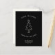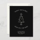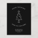 Modern, simple Change of address postcard for the holidays! A minimalist Christmas Tree Illustration and typewriter typography reading ' Merry Christmas from our new home ' in a black and white design. On the back is space for a custom message, season's greetings, and a festive mistletoe illustration.