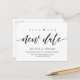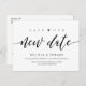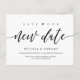 This is the modern aesthetic design themed, in Black font, Wedding party invitation Rescheduled (postponed / postponement) postcard (Save our new date) . It is the perfect and elegant way to make the invitation reschedule announcement to your friends and family.