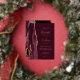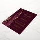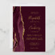 The left-hand edge of this elegant modern wedding invitation features a burgundy red watercolor agate border trimmed with faux gold glitter. The customisable text combines handwriting, copperplate and italic fonts in real gold foil on a burgundy red background. The reverse side features a matching burgundy and gold agate design.