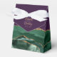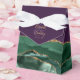 This elegant modern favour box features an emerald green watercolor agate design trimmed with gold faux glitter. Personalise it with the names of the bride and groom in gold-coloured handwriting script over a large ampersand on a purple background, along with the wedding date below.