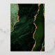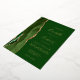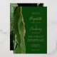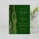 The left-hand edge of this elegant modern wedding invitation features a hunter green watercolor agate border trimmed with faux gold glitter. The customisable text combines handwriting, copperplate and italic fonts in real gold foil on a hunter green background. The reverse side features a matching green and gold agate design.