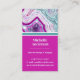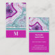 Chic Modern Monogram Initial Teal Magenta Stone Business Card. Agate crystals and geodes continue to be a favourite trend! This print features and up close image of a teal or turquoise and purple or magenta pink geode stone, complete with little crystals and white banding. Accented with vibrant colour blocking to give it a modern and trendy look. Add your initial to make it your own.