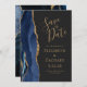 Modern Agate Navy Blue Gold Dark Save the Date Invitation