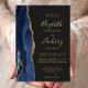 The left-hand edge of this elegant modern wedding invitation features a navy blue watercolor agate border trimmed with faux gold glitter. The customisable text combines handwriting, copperplate and italic fonts in real gold foil on an off-black background. The reverse side features a matching navy blue and gold agate design.