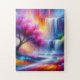 Contemporary Modern Trendy AI Generated Colourful Abstract Art Purple Blue Red Yellow Green Forest Waterfall Landscape Oil Painting Vertical Puzzle.