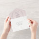 Enjoy an airy light soft pink combined with a modern calligraphy typography with an elegant touch. This all-in-one sustainable invitation would save you money, no need to include RSVP envelopes, your guests will tear away the last panel and mail it back to you as a postcard.
