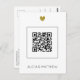 If you're looking for style on a budget, here it is. This minimalist design has just your names, a faux gold foil heart, and a QR code. This will be a link to your wedding website where your guests can RSVP, choose their menu options, and favourite song etc.