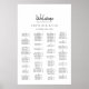 This modern alphabetical seating chart is perfect for a rustic wedding. The simple and elegant design features classic and fancy script typography in black and white. This sign can be used to organise your guests alphabetically or by table number. It includes enough room for about 150 wedding guests. Make room for more (or less) by clicking the customise button and increase or decrease the size of the font. Personalise this sign with the names of the bride and groom and the date.