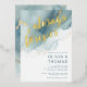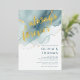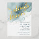 A beach-themed wedding invitation template that features a painted, abstract watercolor scene of a beach and waves with a gold ink pour effect (the gold is a digital effect, not real foil!) and modern calligraphy with the title "always and forever" in real gold foil. Classy and elegant, simple and modern, it is a lovely choice for a beach wedding during any season, for a modern couple.