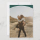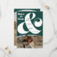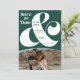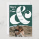 Modern and Elegant script calligraphy ampersand with rounded mask overlay of simple 2 photos in deep forest green emerald and white wedding save the date.