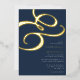 A simple modern navy blue wedding invitation features a real gold foil ampersand. Personalise all the important details including bride and groom name, wedding date and location.