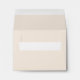 Custom A2 wedding RSVP / response card envelopes feature chic wedding return address custom text that can be personalised and a black and beige / warm white colour scheme. A pattern of black and beige horizontal stripes dresses up the inside of the envelope.