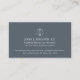 A minimalist and modern slate grey coloured attorney business card featuring a centred set of justice scales and text fields for your business information.