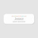 Pretty and trendy name tag that includes personalised text for employee name and title on white background with colourful geometric accent.