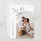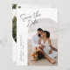 This Modern and Simple Save The Date Card will display your details and photos beautifully to your guests. Add a photo to the arch display and also to the backside, giving you 2 photo spaces. You can then personalise the names, date and location.