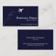 These travel business cards are perfect for travel agents, travel agencies, pilots, world travelers, travel bloggers, and more. The card features a dark blue textured background print, with an aeroplane with air trail on the front. There is room for your business name (or your name), a tagline and a website. The back has room for your name and contact details.