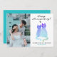 Modern Anniversary Gradient Blue Cats Love Photo Holiday Card