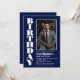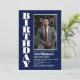 Modern Any Age Navy Blue White Photo Birthday Invitation