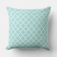 Modern Aqua Blue Moroccan Quatrefoil Pattern Cushion