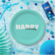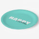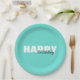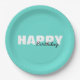 Modern Aqua Blue Typography Happy Birthday Paper Plate