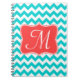 Modern Aqua Coral Chevron Zig Zag Stripe Fabric Print Pattern Monogram Initial Note Book Personalised