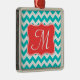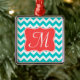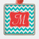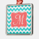 Modern Aqua Coral Chevron Zig Zag Stripe Fabric Print Pattern Monogram Initial Christmas Ornament Personalised