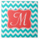 Modern Aqua Coral Chevron Zig Zag Stripe Fabric Print Pattern Monogram Initial Decorative Display Tile Personalised