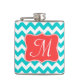 Modern Aqua Coral Chevron Monogram Whiskey Flask