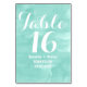 Modern aqua green watercolor table number. stylish, elegant and chic light pastel aqua green watercolor brushstrokes background. Simple and artistic wedding theme perfect for spring and summer wedding theme.