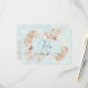 This wedding response card design features a beautiful pale aqua turquoise background with an underwater texture feel, surrounded by dusty blue, tan, brown, peach, and white shells, coral, and sea life. Perfect for the destination or beach wedding. Created by Simply Farmhouse Press.