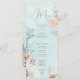 Dive into the enchantment of love with our captivating underwater-themed wedding suite. Against a stunning pale aqua turquoise background that evokes the serenity of the sea, an underwater texture adds depth and dimension to the design. The wedding menu is adorned with a delicate array of dusty blue, tan, brown, peach, and white shells, coral, and sea life, creating a harmonious and mesmerising tableau. It captures the essence of an oceanic romance, where love and nature intertwine in a perfect dance. The shells, coral, and sea life symbolise the beauty and diversity of your love story, while the serene aqua turquoise background reflects the calm and purity of your union. Prepare to enchant your guests with a design that transports them to a world beneath the waves, where love is as boundless as the ocean itself. Set the stage for a wedding celebration that celebrates the wonder of nature and the magic of love. Created by Simply Farmhouse Press, it is part of the Modern Aqua Ocean & Shells wedding suite collection.