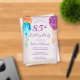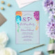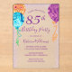 This modern 85th birthday party acrylic invitation features fancy fractal patterned balloons in Orange, pink, aqua, and purple with purple script to personalise on a frosted translucent background. Designed by Susan Coffey.