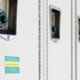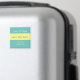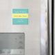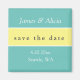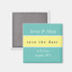 Modern Save the Date magnet design features light aqua background with pale yellow center "save the date" band. Personalize with couple's name, event date and location in modern white font.