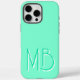 Modern Aquamarine Monogram Initials Contemporary Phone 16 Pro Max Cases features a your custom personalised monogram in modern script typography. Perfect for family and friends for birthdays, Christmas, holidays, Mother's Day, Father's Day and more. Designed by ©2024 Evco Holidays www.zazzle.com/store/evcoholidays