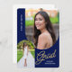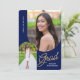 Invite friends and family to your "Grad Party" with the modern, 2 photo, navy blue and gold invitation. The design features photos with an arched edge. Custom text, on the reverse side, allows you to personalise with your party details.