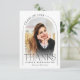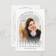 This modern chic graduation thank you card features two photos with delicate arch frame, and elegant trending typography.