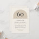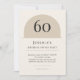 Warm neutral minimalist arch birthday invitation with modern typography. Age name date time location and RSVP are fully editable so you can customize for any 60th celebration and print or mail with ease.