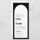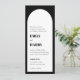 This modern arch invitation features bold typography. The design is black and white. There is a QR code on the back, which makes this invitation all-on-one. Elegant and simple.
