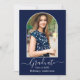 Modern Arch Photo Frame - Trendy Calligraphy Script - Photo Graduation Party Invitation Card - Blue Background
