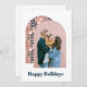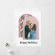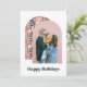 Modern Arch Custom Photo Pink Foliage Holiday Card