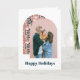 Modern Arch Custom Photo Pink Foliage Holiday Card